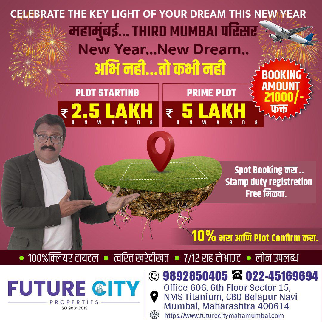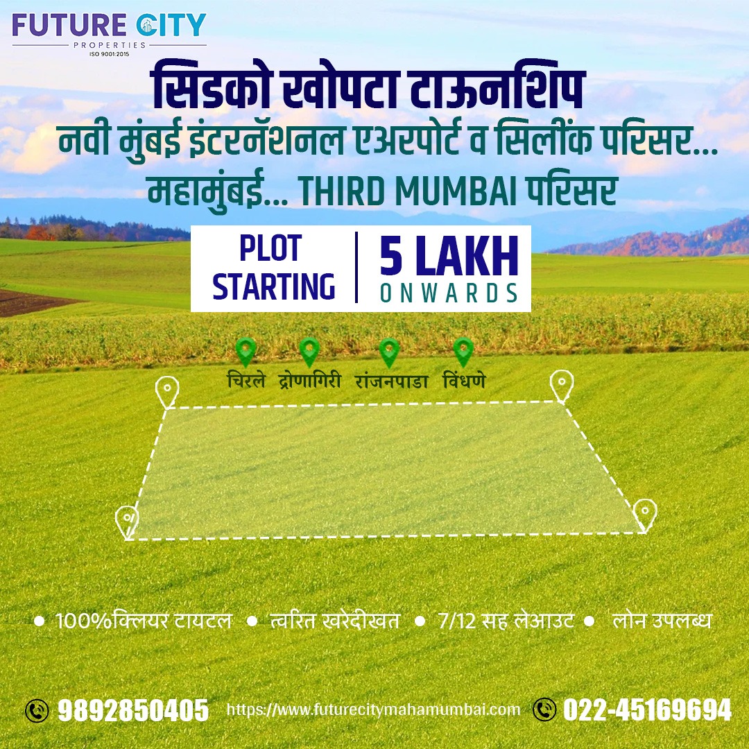 Future City MahaMumbai is established in 2022. We are ready to serve open plot in smart City & also flats in Navi Mumbai, Panvel & Ulwe. Looking forward to generate happy faces of Property holders. We are in market to present all legal properties best deal with 100% transparency to our clients. Future City MahaMumbai is the firm providing raw land to your dream home. Future City MahaMumbai are having Undeveloped/Cidco/Agriculture land in upcoming smart City. Also we are providing Flats in Navi Mumbai, Ulwe & Panvel with clear title and RERA registered. We are leading land developers offering N.A plots , Residential, Commercial lands in Navi Mumbai & Kokan Regions. Our projects extend across several locations in and out skirts of Navi mumbai & Kokan Regions.